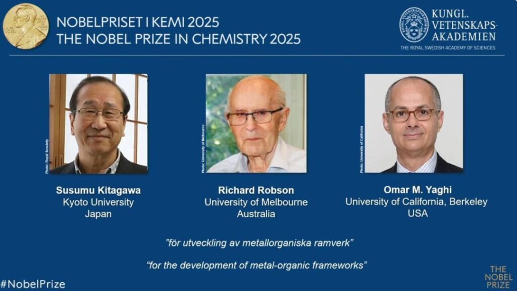 У 2025 році наукова спільнота знову отримала потужний поштовх до розвитку — Нобелівську премію з хімії присуджено трьом видатним ученим: Сусуму Кітагаві (Японія), Річарду Робсону (Велика Британія) та Омару Ягі (США). Їхні відкриття стали справжнім проривом у галузі матеріалознавства та нанохімії — адже вони створили те, що сьогодні вважають «молекулярною архітектурою майбутнього» — металоорганічні каркаси (MOF).